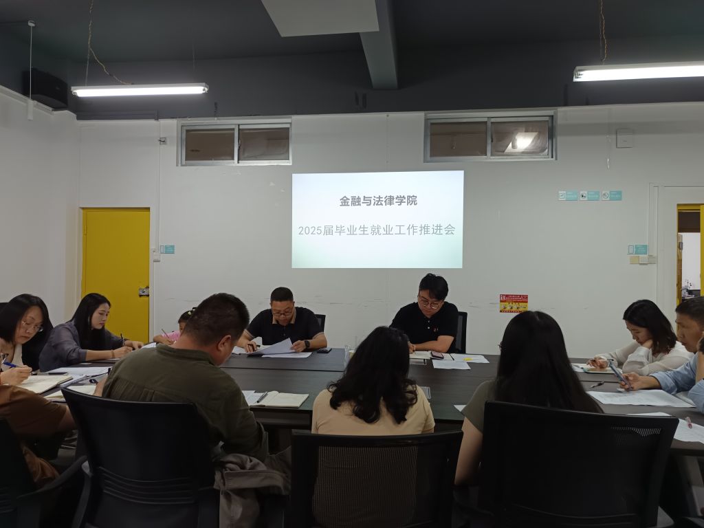 为全面总结分析当前就业工作情况,积极部署下一阶段冲刺任务,5月7日下午,金融与法律学院在3207会议室召开2025届毕业生就业工作推进会。学院党总支书记、副书记及各教研室主任、副主任、毕业班辅导员参会。