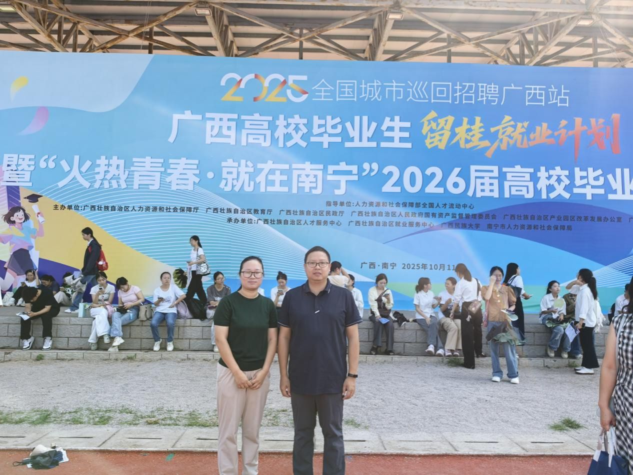 为进一步拓宽就业渠道,精准对接相关企业需求。10月11日,学院组织师生前往广西民族大学参加广西高校毕业生留桂就业计划暨“火热青春 就在南宁”2026届高校毕业生双选会。