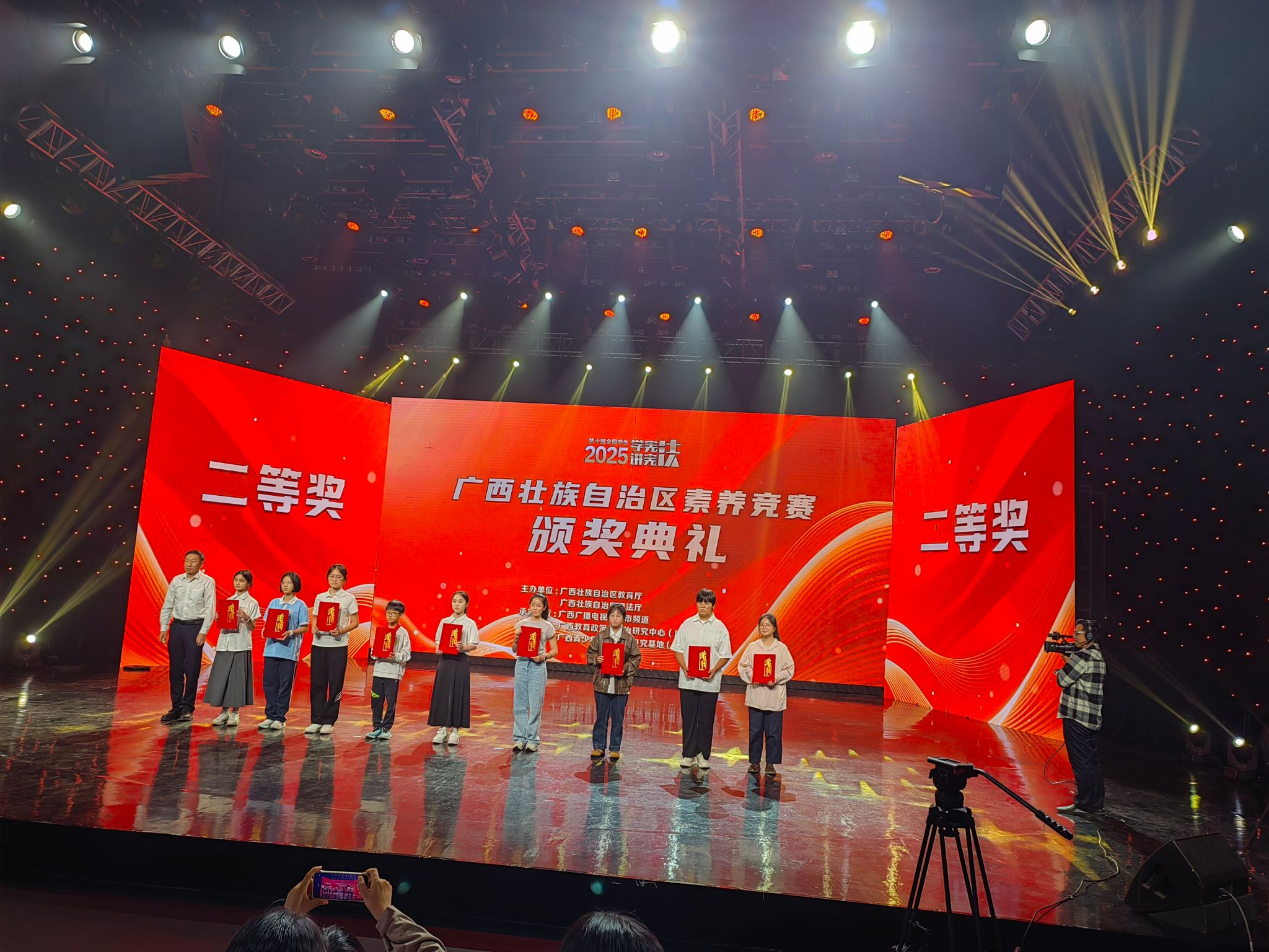 近日,由广西壮族自治区教育厅主办、广西广播电视台承办的2025年全区学生“学宪法 讲宪法”素养竞赛决赛在广西广播电视台圆满落幕。金融与法律学院2023级法学专业李雪莲同学凭借扎实的宪法理论功底、清晰的逻辑表达与稳定的现场发挥,从全区高校组众多参赛选手中脱颖而出,最终荣获高校组二等奖,充分展现了我校法学专业学子的法治素养与综合能力。