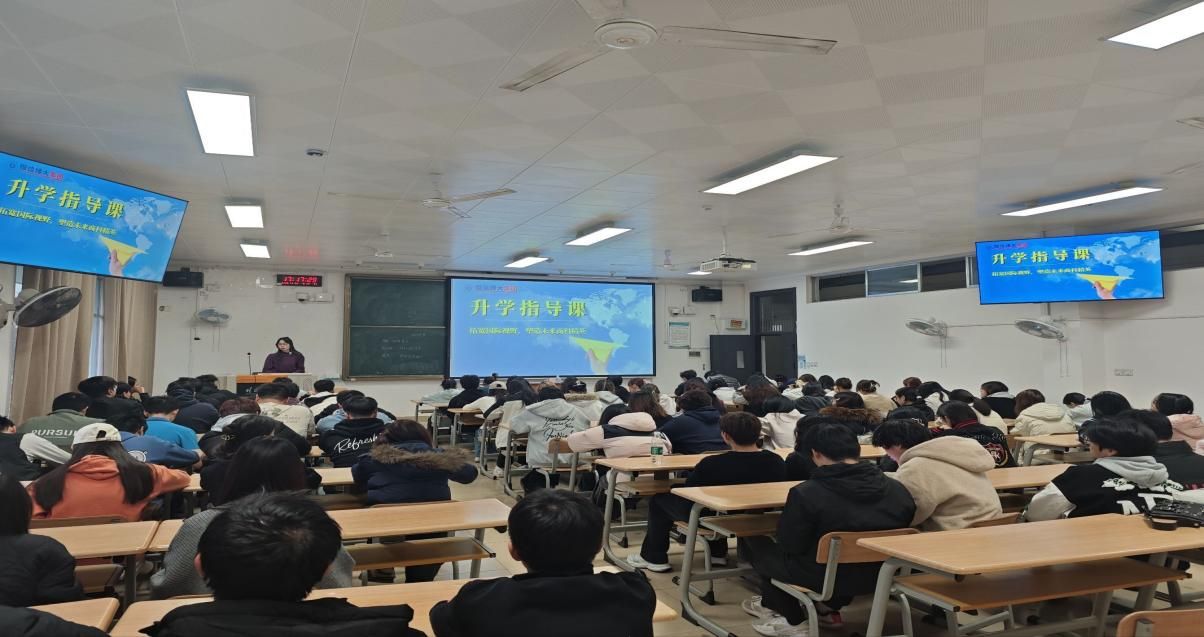 为精准服务学生升学深造需求,助力有志于出国留学的高年级学子明晰规划、掌握关键,近日,金融与法律学院联合国际交流处成功组织全体2022级、2023级学生开展了升学指导系列宣讲活动5场次。本次活动旨在为同学们提供系统性、前瞻性的指导,内容全面覆盖关键政策解读与核心申请流程剖析,现场反响热烈,取得了显著成效。