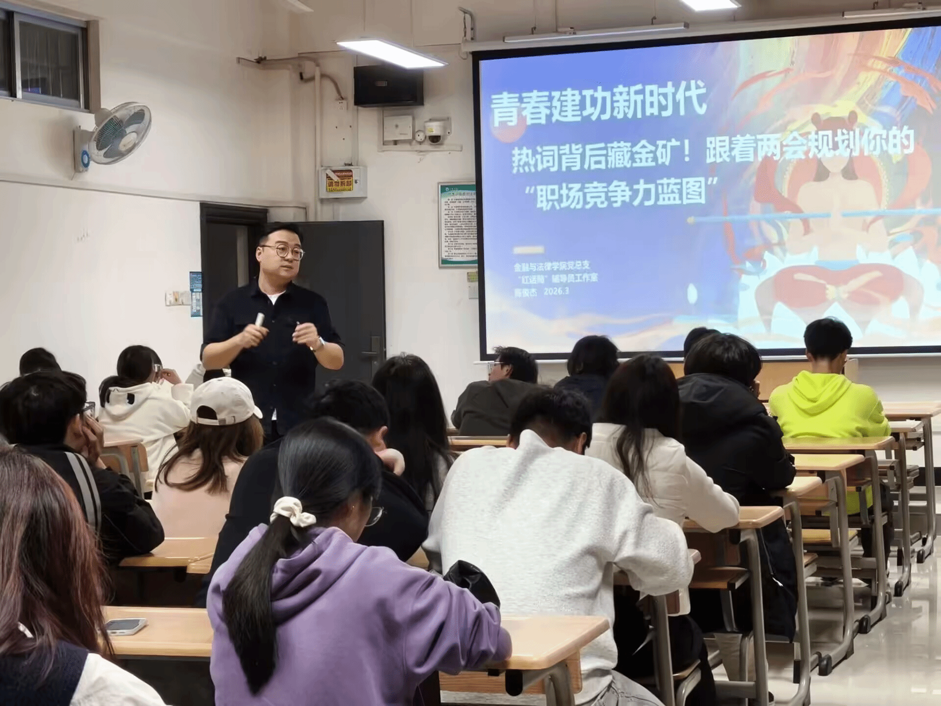 “热词背后藏金矿,如何跟着两会规划职场竞争力?”“智能时代,该如何思考人生与家庭?”3月8日至16日,金融与法律学院2026年春季学期“开学第一课”火热开讲。学院领导班子化身思政导师,紧扣全国两会精神与学生关切,打造有高度、有温度、有深度的思想教育课堂,为新学期育人工作开好局、起好步。