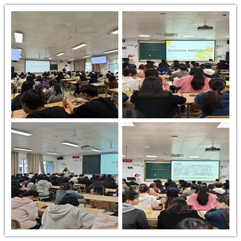 学院充分发挥领导干部“头雁效应”,让思政课充满时代“热气”。3月12 日,党总支书记以《热词背后藏金矿!跟着两会规划你的 “职场竞争力蓝图”》为题,摒弃枯燥说教,将两会核心热词“新质生产力”与国家“金融强国”、乡村振兴战略结合,引导学生将个人职业规划融入国家发展大局。3月16日,院长为2024级法学新生讲授《人生与家庭》,探讨智能时代青年的个人成长与家庭责任。两堂课一讲家国情怀、一讲个人修养,构建起立体育人坐标系。
