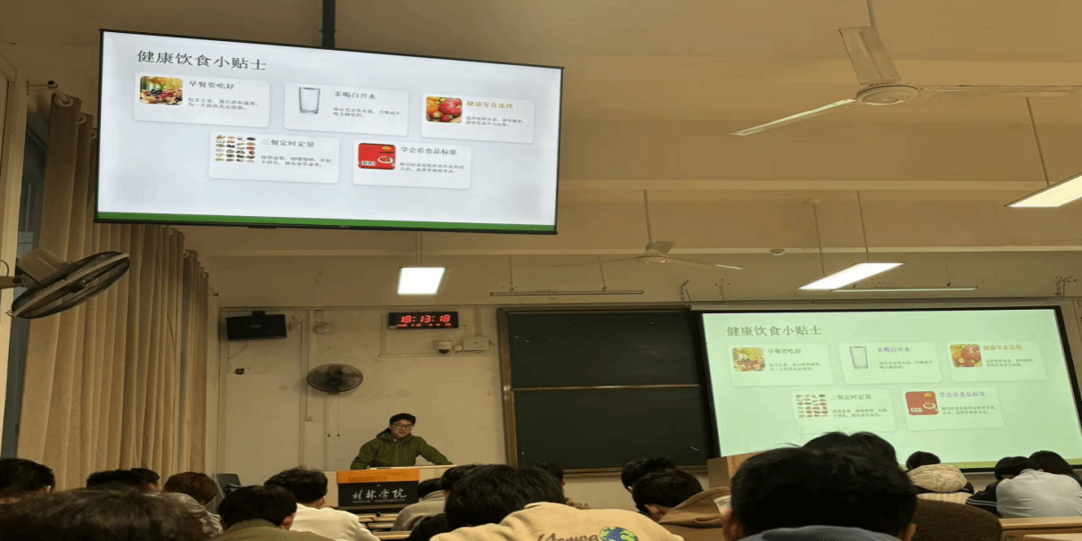 在身体健康方面,重点强调了规律作息的重要性,建议同学们制定科学的作息时间表,保证充足睡眠;在饮食上注意营养均衡,减少外卖和高糖高脂食品的摄入;在运动方面,鼓励大家走出宿舍、走向操场,利用课余时间参与体育锻炼,增强身体素质。