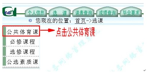 (二)请同学们按本专业课程表上的公共体育课程时间进行选课。如出现所选课程的上课时间与实际上课时间不一致的,所选课程无效。