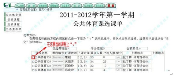 (二)请同学们按本专业课程表上的公共体育课程时间进行选课。如出现所选课程的上课时间与实际上课时间不一致的,所选课程无效。