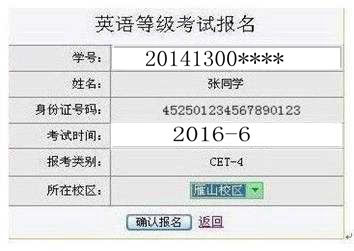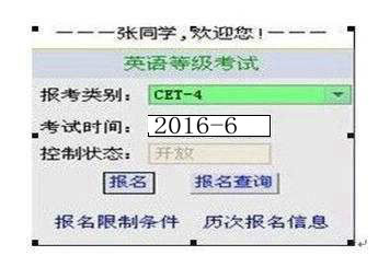 ⑵在英语等级考试对话框的报考类别中选择相应的考试类别,确定后点击报名。(四级:选CET-4,六级:选CET-6,三级:选CET-3)如图所示: