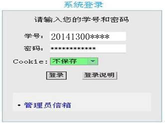 ⑴在系统登录的对话框中输入学号和密码,首次登录密码与学号相同。Cookie处请选择不保存。如图所示: