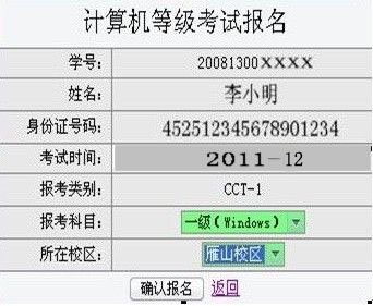 4.确认报名后请再次检查报名信息是否正确。报名成功后请返回、退出。如图所示: