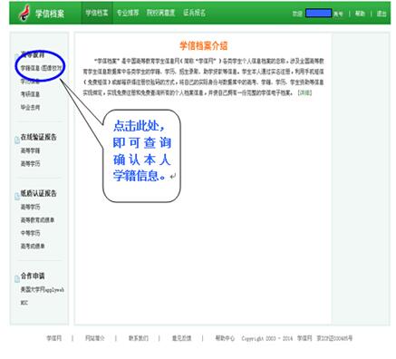 “学信档案”是中国高等教育学生信息网(简称“学信网”)各类学生个人信息档案的总称,涉及全国高等教育学生信息数据库中各类学生的学籍、学历、招生录取、助学贷款等信息。学生本人通过实名注册,利用手机短信(免短信费)或邮箱获得注册校验码的方式,将自己的实际身份与数据库中的高考、学籍、学历、学生资助等信息实现绑定,实现免费注册和免费查询个人的档案信息。