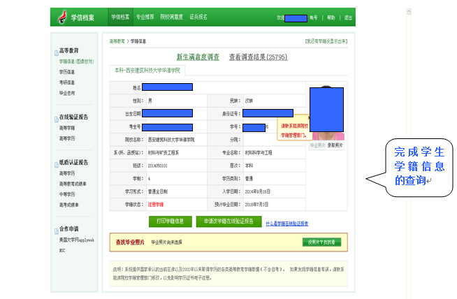 1.学籍注册是一项严肃性的工作,既关系到学生个人的切身利益,也会影响管理部门的统计决策。学生应每学年登录(学信网)查询学生本人学籍信息。