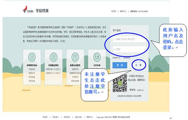 (2)未注册的学生,只有在平台完成注册后方可登陆学信档案。