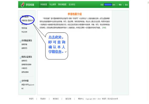 2.点击首页左上角“学籍查询”或在学籍学历信息查询与认证服务模块下点击“新生学籍”,进入“学信档案”。