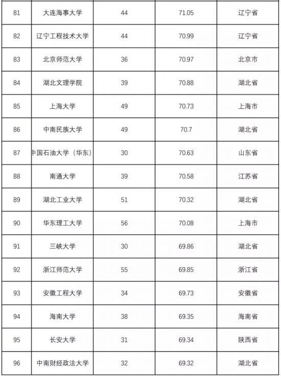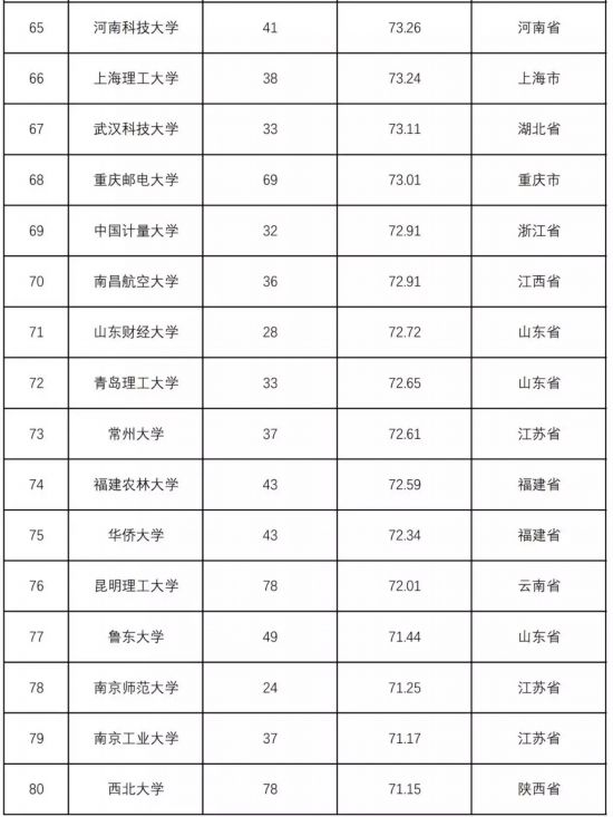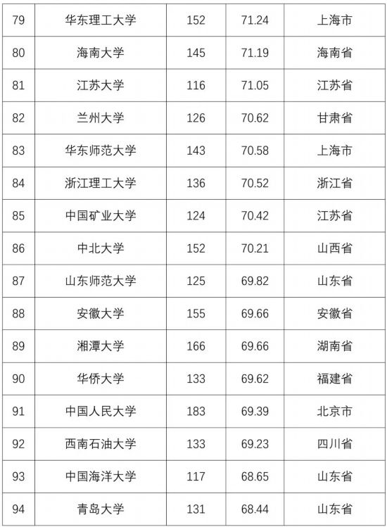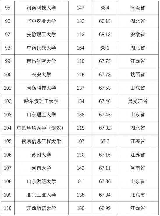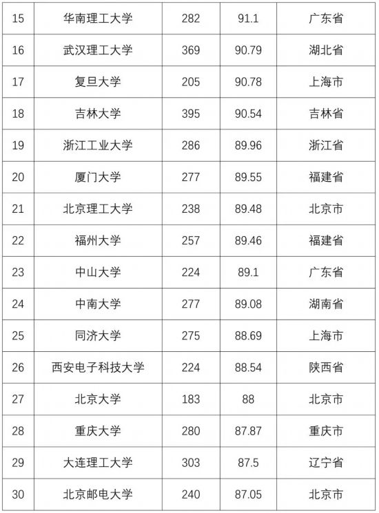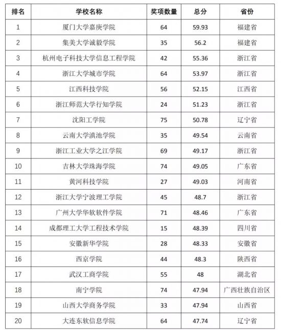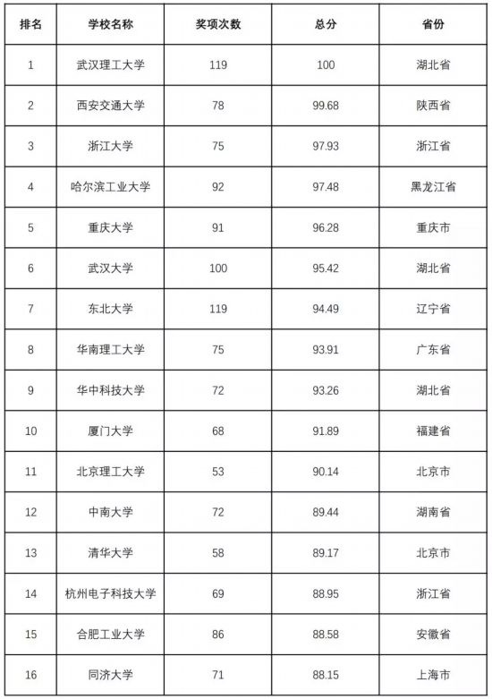 2018年全国普通高校竞赛排行结果(本科)TOP100