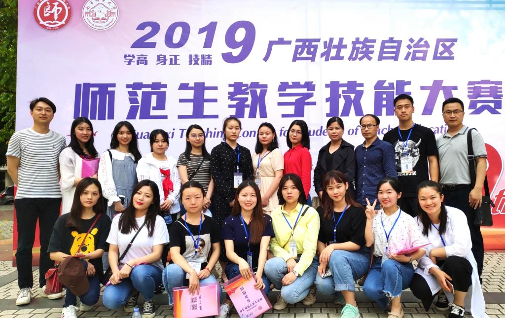 5月11-12日,在2019广西壮族自治区师范生教学技能大赛中,我校选派了英语、音乐学、汉语言文学、数学与应用数学、体育教育、学前教育六个师范教育类专业的13名选手参加比赛。据比赛组委成绩公示信息显示,我校数学与应用数学专业蒋倩、英语专业赵珊两位同学以总分第一的成绩分别斩获初中数学组、初中英语组一等奖,其中初中数学组是我校第一次获得全区一等奖,初中英语组连续两年获得全区一等奖。其他专业参赛选手也取得了1项二等奖、6项三等奖的优异成绩。