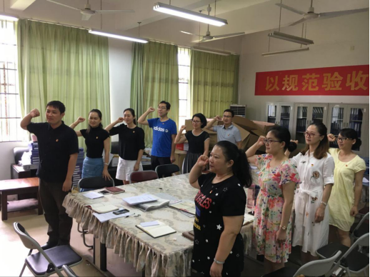 图片说明:支部党员重温入党誓词