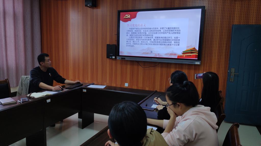 会议首先由支部书记杨杰夫同志上党课。本次党课根据校党委开展“四史”教育活动为主线,以学习中国共产党党史为主题开讲。