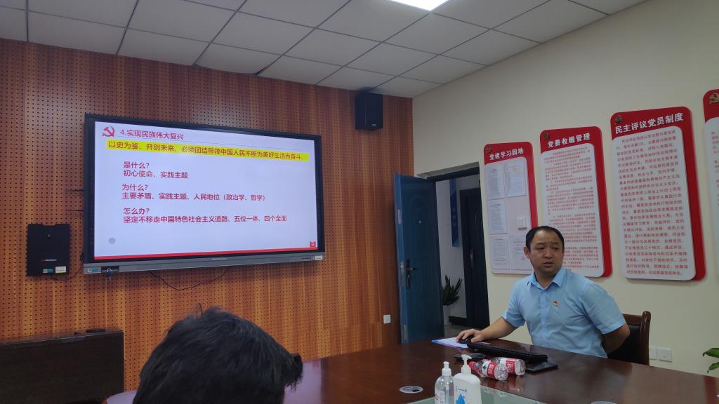 会议第二个环节是检视问题。由杨杰夫同志向全体党员汇报党支部在上半年在党史学习、实际工作、“反四风”等方面的工作情况和问题。随后,根据支党本学期初布置的党员个人学习任务要求,对每位党员的完成情况进行了检查。