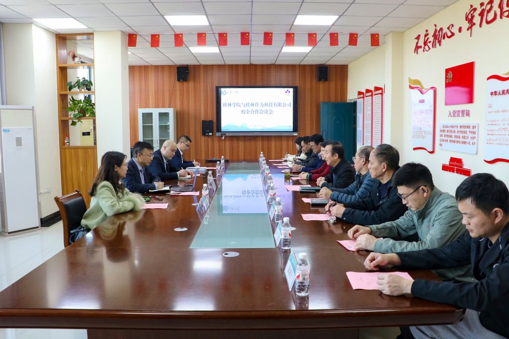 为贯彻落实自治区党委提出的“人工智能+”行动,不断积蓄和增强发展新动能,3 月 19 日下午,桂林学院与深圳作为科技有限公司在知善楼 8312 会议室举行校企合作洽谈会。会议聚焦人工智能、银发经济等热点领域,围绕产教研融合、科学研究等议题展开深入交流。副校长杨庆庆主持会议,校长吴郭泉、相关职能部门及二级学院负责人参会。