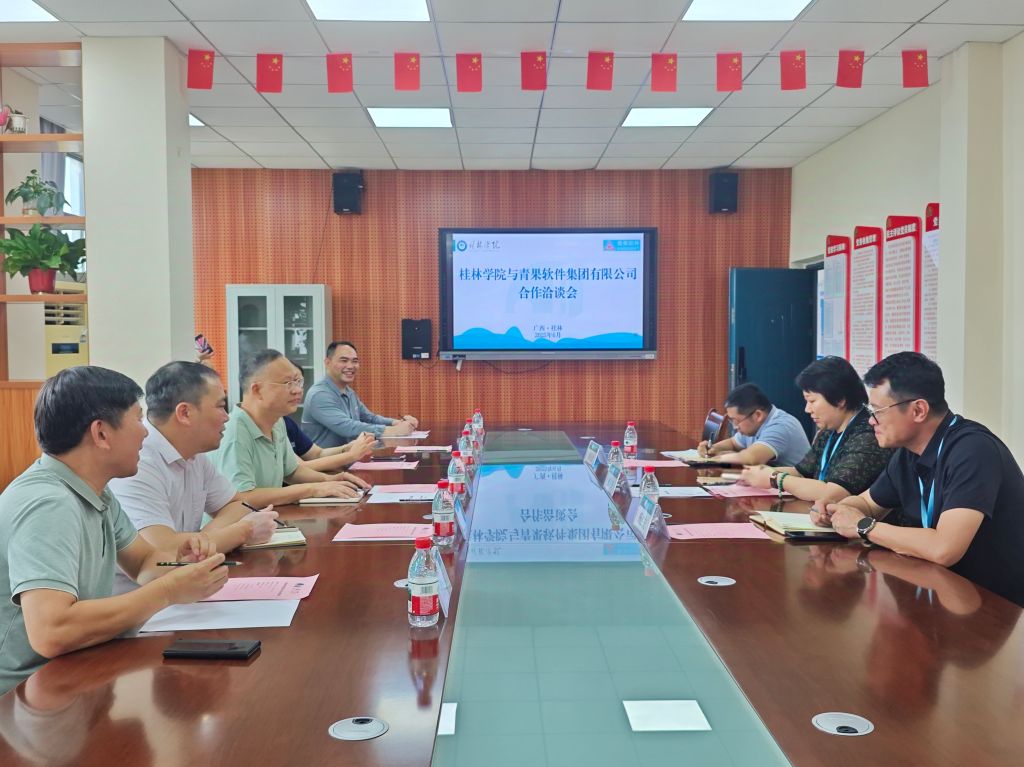 会上,张光铎说明了此次来访的目的,表达了与桂林学院开展校企合作的积极意愿。杨庆庆详细介绍了桂林学院的基本情况、办学特色、学科专业布局以及在应用型人才培养、产教融合等方面的规划与成果,并希望以教务系统更新换代为契机,与青果软件集团在教学信息化管理、课程教学软件开发等多方面,开展全面、深度、精准、长期的合作。