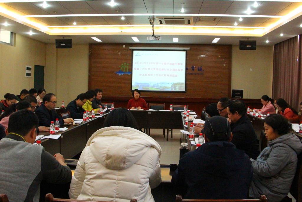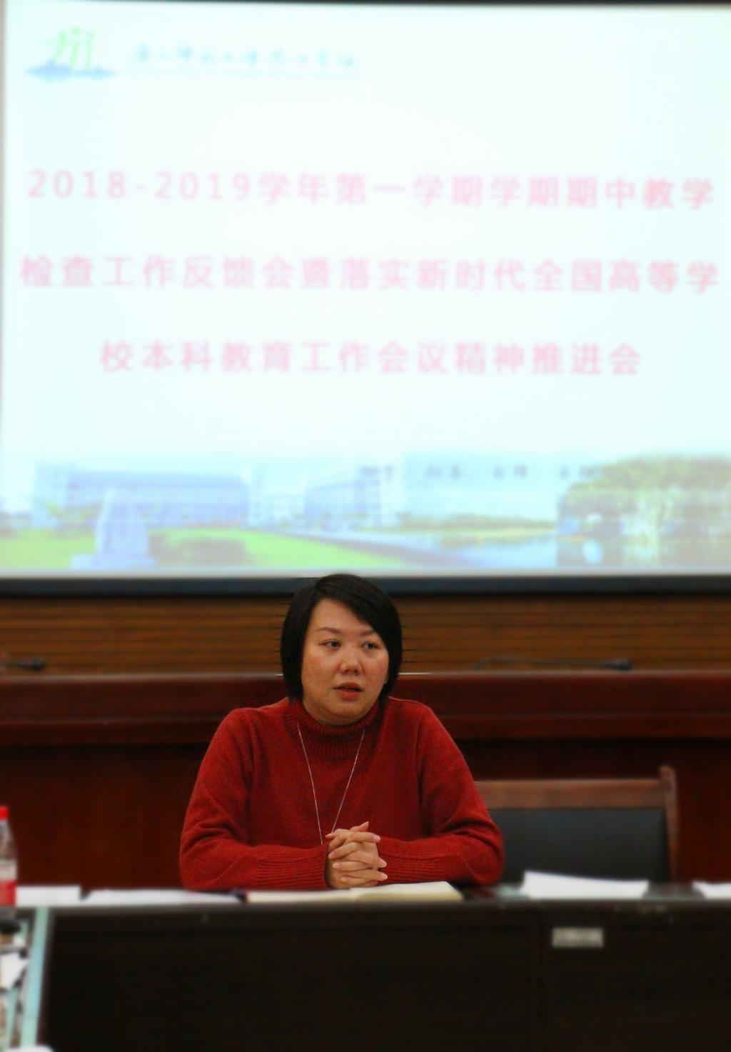 最后,杨庆庆副校长作总结发言。杨副校长强调,一是各教学单位要认真学习高等教育有关文件,紧跟新时代教育步伐。包括新时代全国高等学校本科教育工作会议精神、教育部部长陈宝生的讲话稿“坚持以本为本、推进四个回归,建设中国特色、世界一流的一流本科教育”、教育部发布的《关于狠抓新时代全国高等学校本科教育工作会议精神落实的通知》以及新高教40条《关于加快建设高水平本科教育全面提高人才培养能力的意见》、《关于高等学校加快“双一流”建设的指导意见》、《教育信息化2.0行动计划》,以及有关教师队伍建设、师风师德建设、人才培养、课堂教学质量、创新创业教育、产教融合等文件。二是调整教学工作的思路和方法,按照国家文件要求,做到“对标”、“对表”,培养适应社会需求的人才。三是强化教学过程管理,加强师风师德建设。四是切实落实教学工作的中心地位,坚持以本为本,努力实现四个回归。