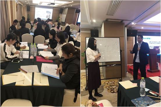 在为期两天的学习中,北京工商大学讲师周付安使用蓝墨云班课APP与参训教师进行在线互动,总结教学设计中遇到的突出问题。他借助教学设计画布,讲述了教学设计的原理、方法,强调学生本位的重要性,让参训教师们科学理解教学是螺旋式上升的过程,撰写以学生学习成果为导向的学习目标,从而提高课堂效率。