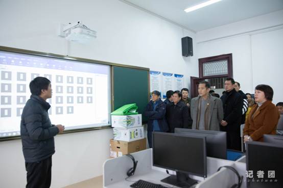 在媒体融合实训中心,杨庆庆副校长介绍了媒体融合实训中心建设规划和历程。她指出媒体融合实训中心的成立,是对我校传媒学院组建的重要支持,将对我校新闻传媒专业群发展起到极大的推动作用。
