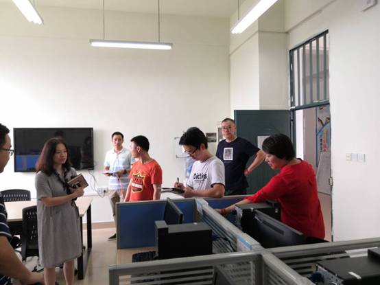 与会人员首先在暑期新建成的尚善楼3101沙盘模拟实训室集中,杨庆庆副校长强调本次现场会主要工作是检查学校各实验实训室的使用情况、排查隐患,检查暑期新建成和已投入使用的实验实训室的各项情况。在检查过程中,工作组对发现的安全隐患及管理使用问题及时做出现场处理。