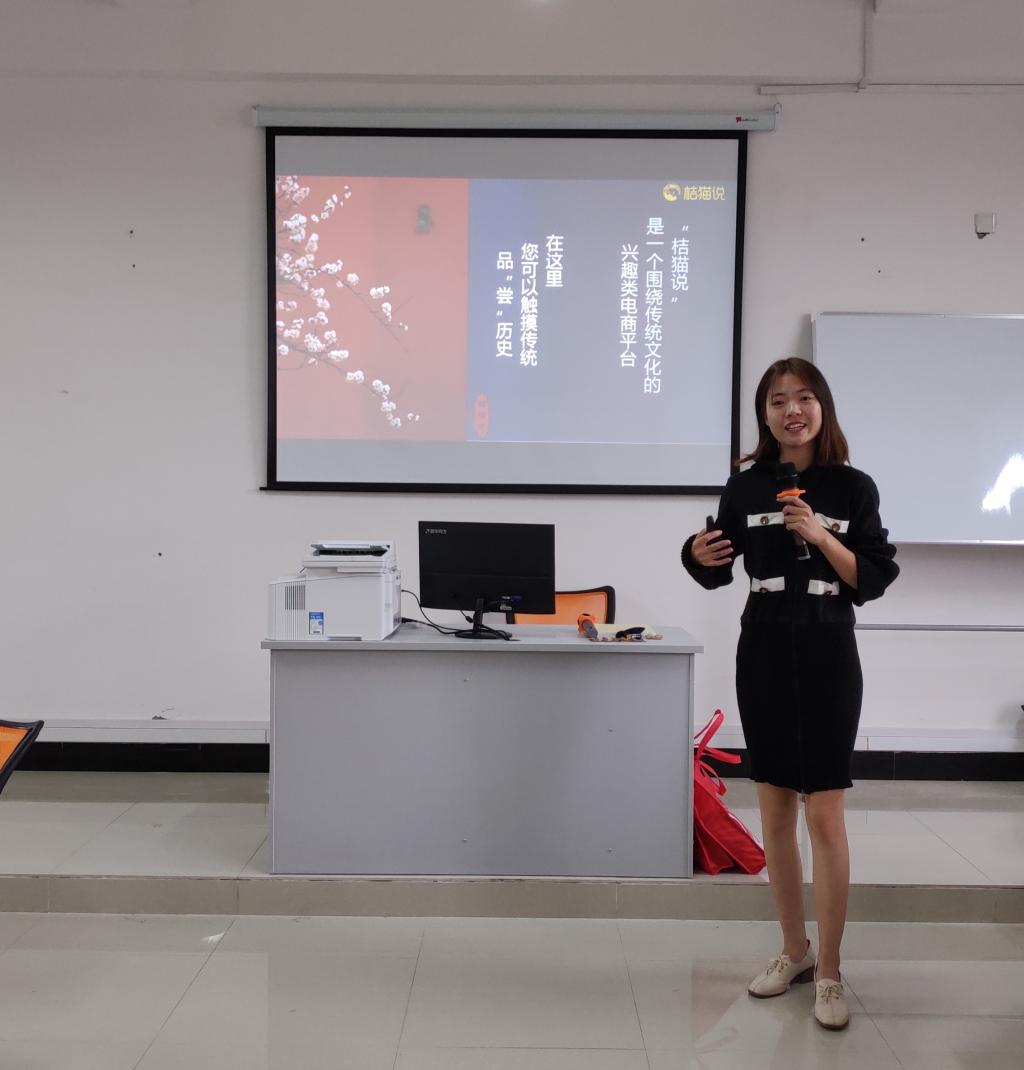 本次活动以教师分享参加省内外双创专业培训班经验、学生分享参加全国互联网+大学生创新创业广西区决赛路演等环节开展。首先,由陈俊杰、金云亮老师分别分享带队参加云南大学甲骨文创新创业培训班集体的见闻与感想,介绍目前全国双创比赛大环境的变化、评委和风投机构对学生创业项目的最新观注点和要求,项目主题的选择、打造与精炼提升。接着由郭时俊老师分享了参加广西师范大学双创教学培训班的经验,他从教学模式、教学体验、教学工具、教学痛点等方面介绍了最新的双创教育融合法。随后,“桔猫说”学生团队为大家展示了参加互联网+区决赛的演路过程,并介绍了比赛评委们的评分重点,师生们以参看互联网+全国总决赛冠军项目路演视频的方式,进行了项目与项目在多个维度上的对比研讨。最后,李明阳老师作了总结活动发言,并布置了近期双创相关重点工作。