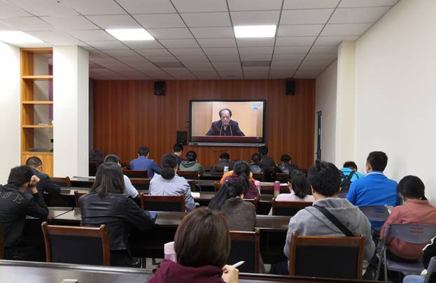 11月13日下午,我校组织师生在知善楼8312会议室集体观看2019年全国科学道德和学风建设宣讲教育报告会直播视频。此次报告会以“以习近平新时代中国特色社会主义思想为引领,大力弘扬科学家精神,加强作风和学风建设”为主题,报告会采用网络视频方式向全国直播。学校各二级学院领导及师生代表近100人共同收看直播。