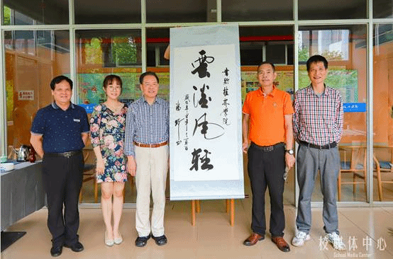 最后,潘琦先生为“桂林学院”留下墨宝一幅,同时对学校今后的发展提出宝贵建议:一是学校现阶段发展很好,已经形成良好的社会效应,未来的桂林学院要从长远考虑,不断深化综合改革提高办学能力,着力提升学校内涵发展;二是在校园文化建设方面要注重传承与创新并重,将更多广西、桂林的元素及文化引入学校,树立“人无我有、人有我精、人精我优”的发展理念,在桂林学院这块招牌上边篆刻文化印记,成为学校的一种文化传承和发扬;三是要落实好习近平总书记在广西视察时对广西教育发展的要求,即要把教育作为管长远的事抓好,全面贯彻党的教育方针,坚持立德树人根本任务,加强师资队伍引导和建设,让学校成为传播新时代社会主义核心价值观的坚实堡垒,培根铸魂、启智润心,涵养学生爱党爱国的情怀。