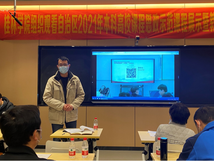 根据安排,本次活动展示课程共12门,课程思政示范课展示与教学研讨两个环节。在示范课展示中,流程分为教师示范、观摩人员与教师互动、专家点评三个部分。我校现场集体选看了2门课程,分别是广西大学高伟老师讲授了《木与人类文明》,他用具有感染力的语言结合历史用到木头的案例进行讲解,教学过程中帮助学生树立有理想信念、有道德情操、有扎实学识、有仁爱之心的教师观。梧州学院宋银秋老师讲授了《高级英语2》,她在“寓教于乐”“潜移默化”的教学中将知识传授与价值观认知完美地融于英语教学中。在教学研讨环节,点评嘉宾对教师的示范课进行了点评。他们认为教师在教学过程中巧妙地融入了课程思政元素,充分地将专业课程教学融入家国情怀、文化自信、人文精神、仁爱之心等要素,实现了知识传授与价值引领的统一、显性教育与隐性教育的统一、教书与育人的统一,充分体现了他们对课程思政的深度思考。