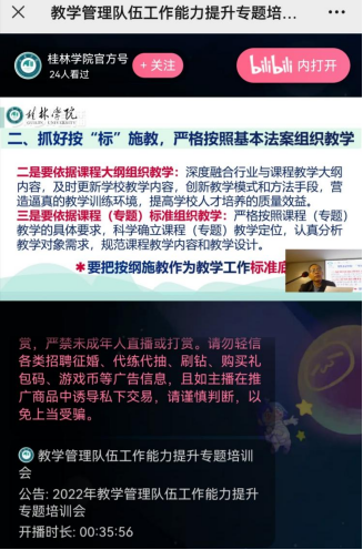 副校长杨庆庆主持培训会。培训会采取线上线下相结合的方式进行,教学科研处全体人员(含教学秘书),各二级学院院长、教学科研副院长及各基层教学组织负责人共100余人参加了培训会议。