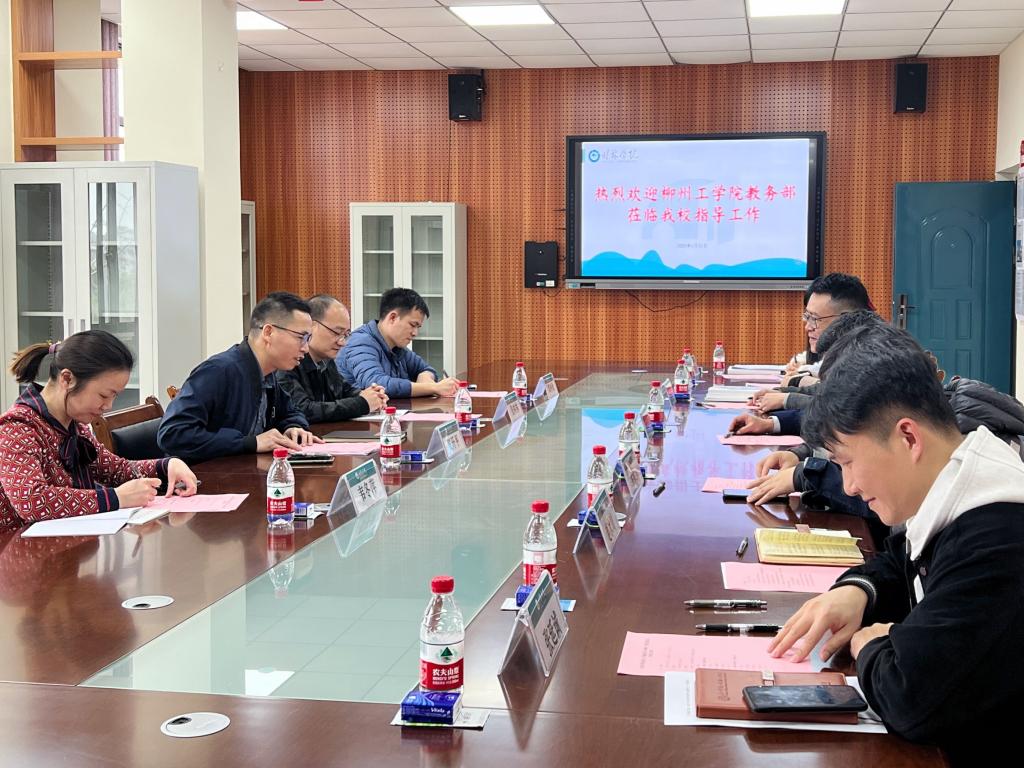 3月31日下午,柳州工学院教务部部长黄开平一行来我校调研交流,我校教务与产教融合处领导班子及相关人员参加座谈,会议由教务与产教融合处处长杨杰夫主持。