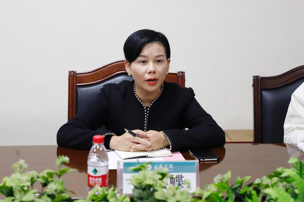 杨庆庆副校长对广西数广迈越科技有限公司邓彩蝶总经理一行表示热烈欢迎。她介绍了学校与浙江名淘等合作共建产业学院的情况,也表达了学校建设自治区示范性现代产业学院和自治区级创新创业学院的愿望,希望通过双方的洽谈,寻找资源与需求的契合点,加快提升产业学院建设水平,实现做大做强桂林学院发展目标。