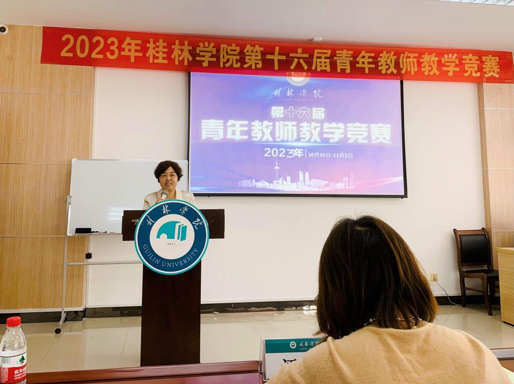 开幕式上,何玲副校长为大赛致辞,她介绍了我校历年举办的青年教师教学竞赛基本情况:教学竞赛搭建了我校青年教师学习、交流的平台,营造了“以赛促教、以赛促改”教学氛围。我校已成功举办了十五届教学竞赛,一大批青年教师在这个舞台上脱颖而出,快速成长为各专业的教学科研骨干,他们在各级各类的教学竞赛中为学校争得荣誉,也激励着广大青年教师成为有理想信念、有道德情操、有扎实学识、有仁爱之心的“四有”好老师。她祝愿所有参赛选手取得优异成绩!更要争取在区赛中再创佳绩!