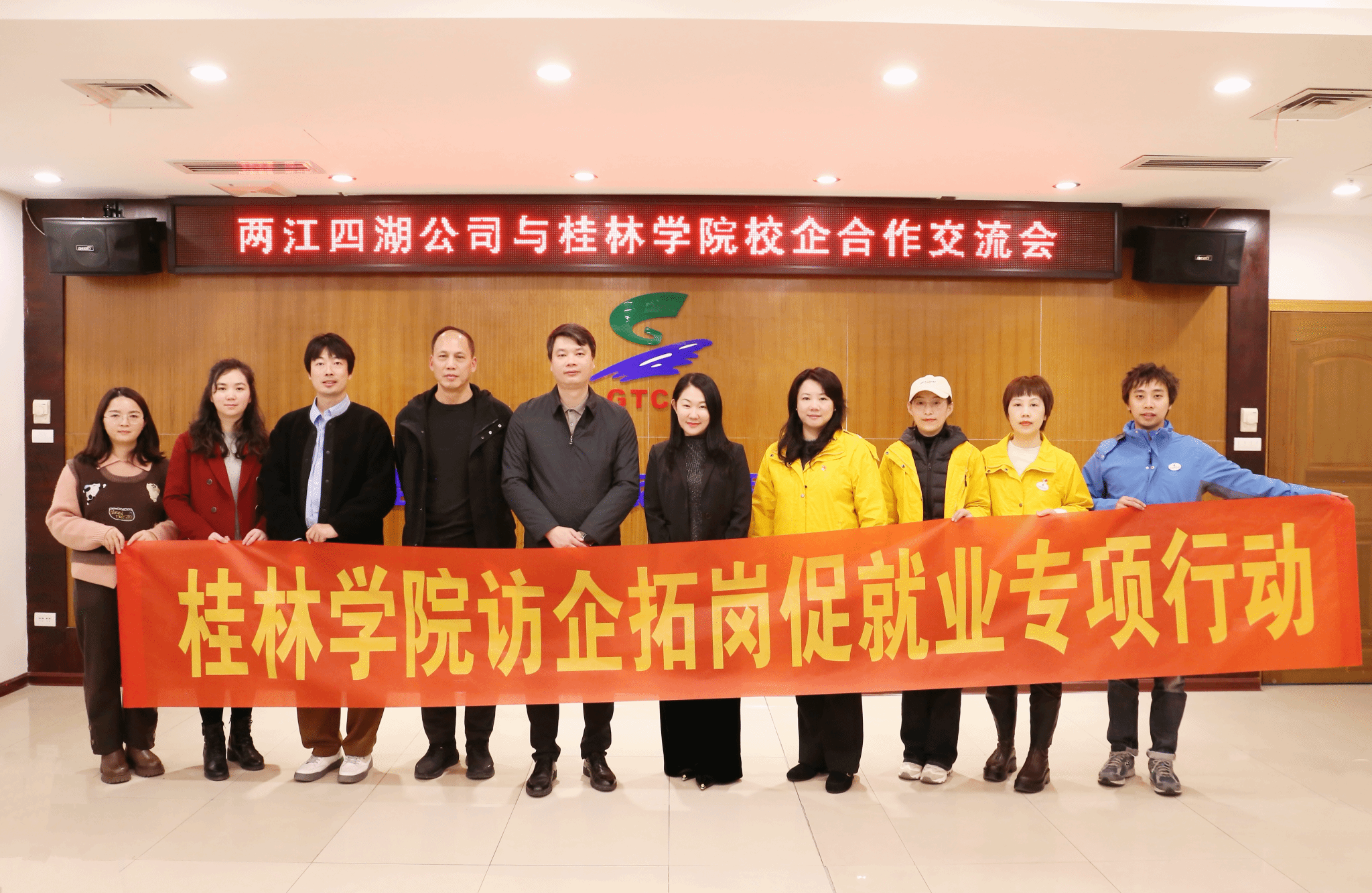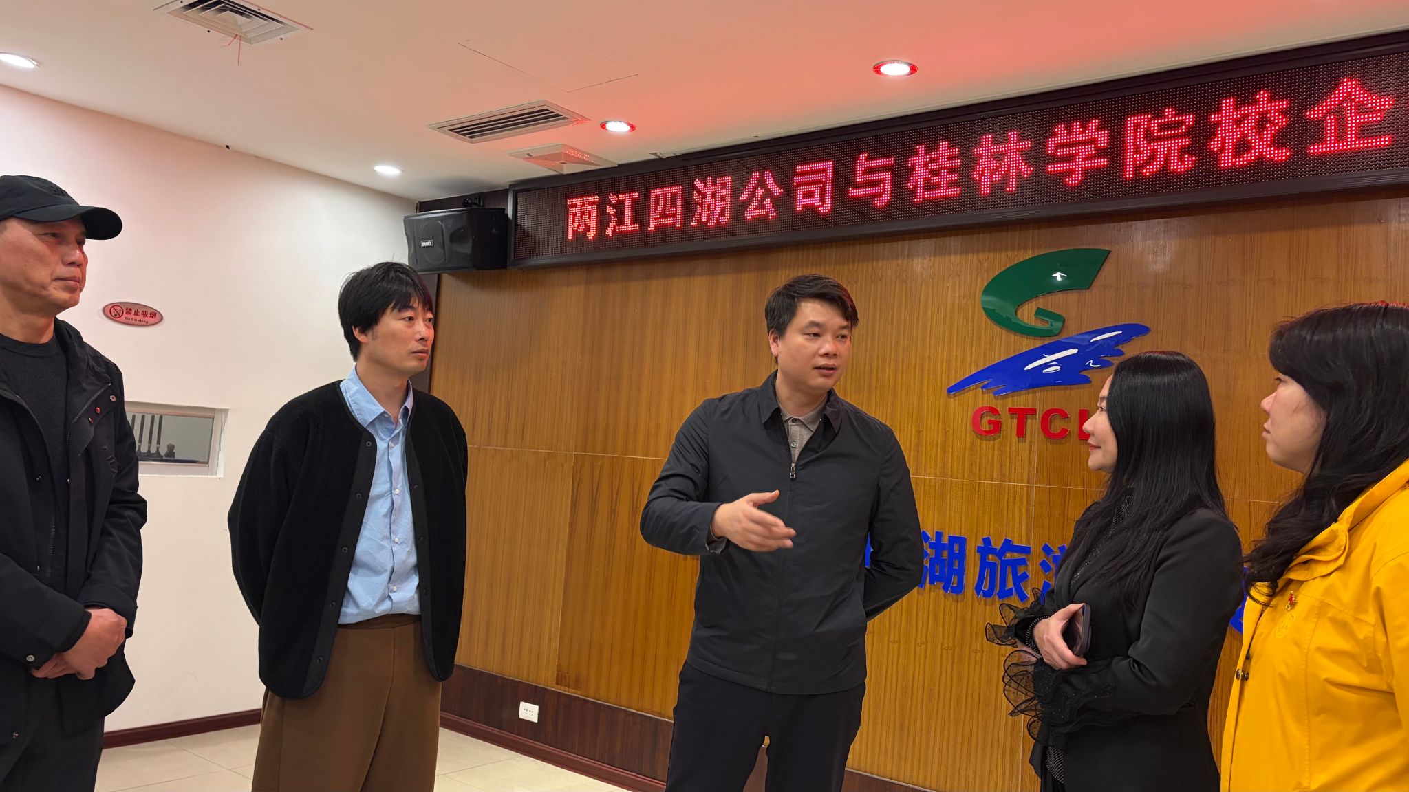 3月11日下午,学校副校长蒋毅率旅游与体育健康学院班子成员及教师代表一行5人,赴桂林两江四湖旅游有限责任公司开展访企拓岗促就业专项行动,桂林两江四湖旅游有限责任公司总经理甘飞热情的接待了学校一行。