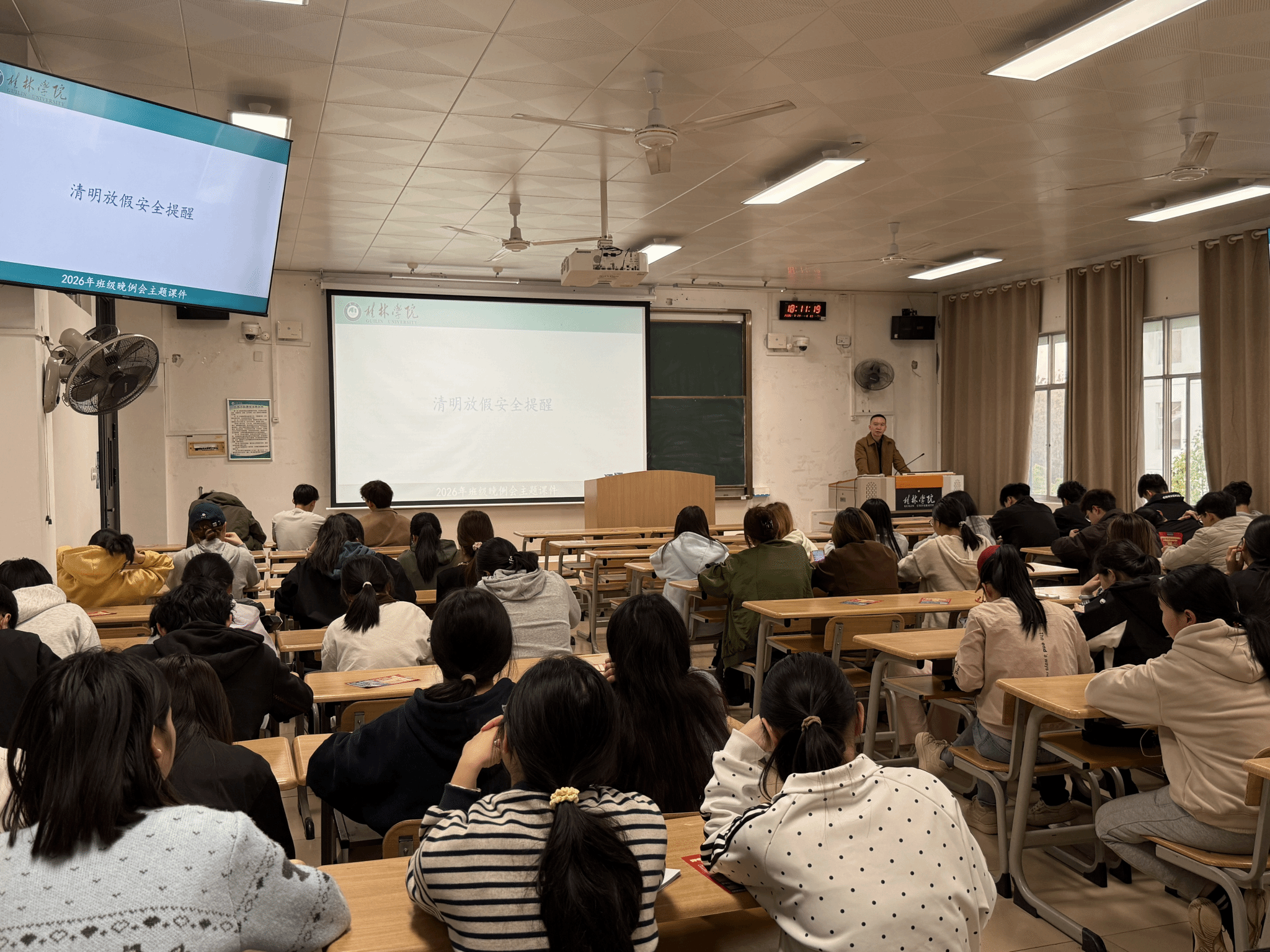 3月29日,旅游与体育健康学院各年级集中开展假前安全教育主题班会,切实增强学生假期安全防范意识。