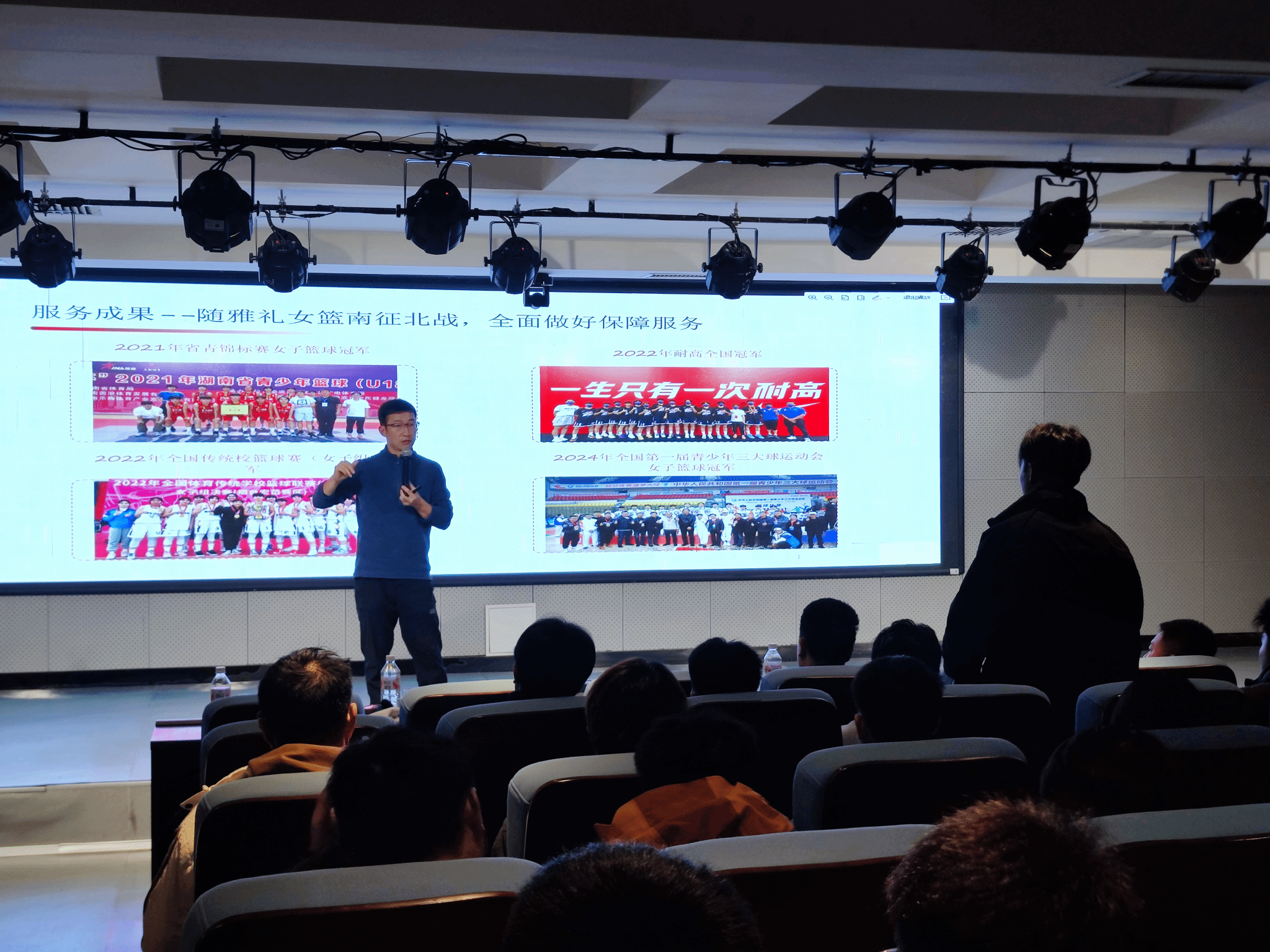 随后,罗洋结合当前运动康复行业的发展背景,分析了行业趋势,并详细介绍了中心的服务内容。针对毕业生普遍关心的就业方向,他重点解读了中心的岗位设置与人才需求。