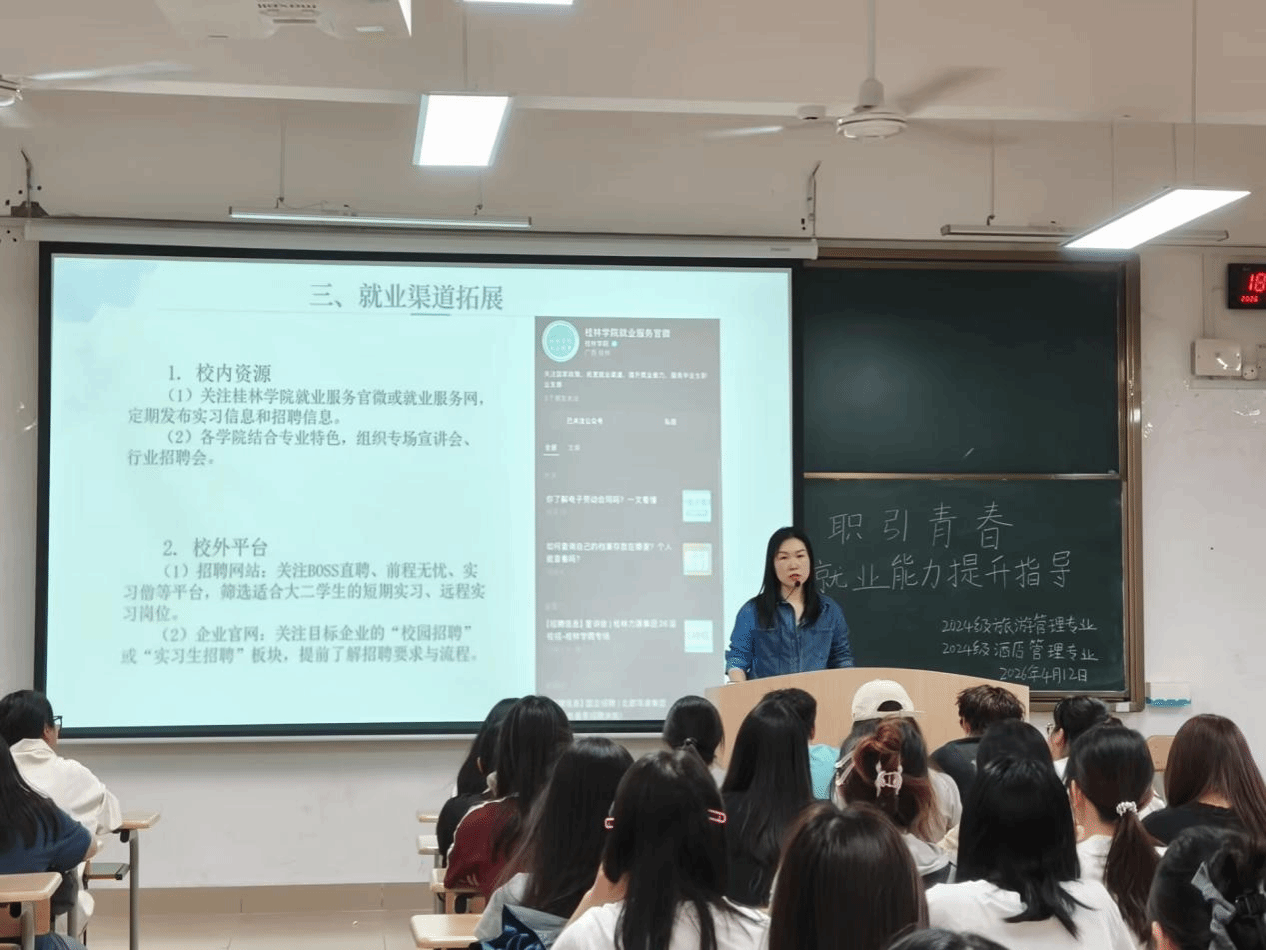 4月12日,旅游与体育健康学院面向各年级各专业开展“职引青春 就业能力提升指导”主题班会,各辅导员精心组织,为同学们的职业发展助力。