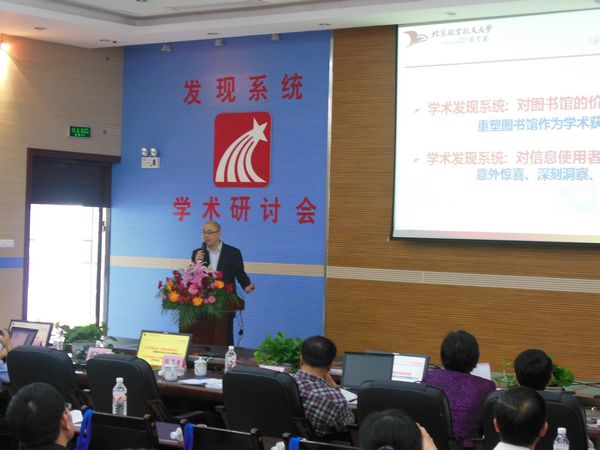 会议过程中,北京超星集团副总经理,研究馆员叶艳鸣对超星发现系统的服务模式、应用技术进行全面的介绍,说明发现的意义在于“意外惊喜、洞察全局、价值再生”。 叶总通过与国外发现系统进行比较,结合西安交通大学用户的典型案例,展示了超星发现系统对中文资源的分面聚类、引文分析、知识关联分析等方面优越性。北京航空航天大学图书馆馆长杨晓光教授做了《Disgover Tool:重塑图书馆作为获取学术信息的入口》的主题报告。他从图书馆、信息使用者两个角度阐释发现系统的功能和价值,并分析了未来的“发现”应是实现用户对资源的“不搜即得”的发展。此外,广西大学图书馆馆长徐尚进教授做了“图书馆的职能与挑战”的演讲;南宁职业技术学院副院长李振秋做了有关高职院校图书馆建设方面的主题报告。