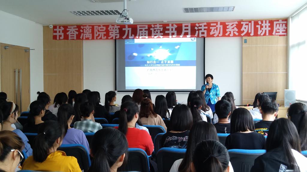 5月3日下午,“书香漓院”读书月名师系列讲座之《知行合一,止于至善》专题讲座在图书馆多功能阅览室进行,由管理系赵巧艳教授主讲。图书馆部分馆员和100多名学生到场聆听。