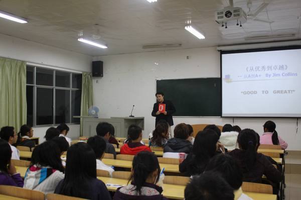 现代营销理论和方法层出不穷,对于营销的理解各大派系也不尽相同,作为一个营销人员,必须要了解一些现代企业营销创新理论,本着这样的目的,黄老师首先为同学们推荐《现代企业营销创新》一书,并简要介绍此书的内容及特点。接着,黄老师与同学们分享了自己对营销的独到见解:他认为,虽然各人对营销的理解有所不同,但要理解营销的未来发展趋势和方向,有两点内容必须重点关注:第一,企业和产品的卖点;第二,关系营销。黄老师着重对“卖点”及“关系营销”进行了详细的阐述,并对与此内容相关的《疯狂营销》、《大客户:识别、选择和管理》、《客户关系管理:加速利润和优势提升》、《客户关系管理为何会失效》等书籍进行了导读。黄老师富有激情的导读使在场的同学学到了很多课堂以外的专业知识,深受启发。