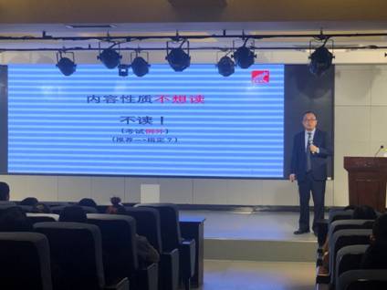 讲座中,颜务林馆长首先阐述了阅读对当前教育的影响,阅读能力和阅读兴趣对个人的影响等;面对知识的海洋和海量的图书,他重点向同学们介绍了阅读的方法、技巧和策略等具体的阅读技能,提出了分层次阅读的读书方法:一、基础阅读:适用高中以前的阅读方法,凭兴趣阅读,二、略读:粗略浏览,可一口气挑出十本书;三、泛读:重点阅读相关内容,摘选出2-3本书;四、精读:最后确定,逐字逐句研读一本书;五、主题阅读:研究性组合阅读。最后,颜馆长对在座的学生提出:“希望大学生都能养成良好的阅读习惯,经常阅读陶冶自己。走到图书馆,多读一些与专业、与文化相关的书”。