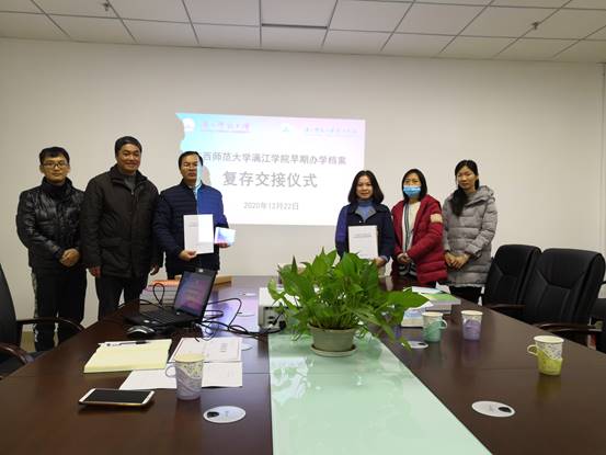 12月22日下午,我校档案馆与广西师范大学档案馆在师大档案馆举行漓江学院早期办学档案复存交接仪式,我校副校长、总会计师祝芸芸出席仪式,师大档案馆馆长刘朝文、学校档案馆馆长王忠、师大档案馆及学校档案馆相关人员参加仪式。