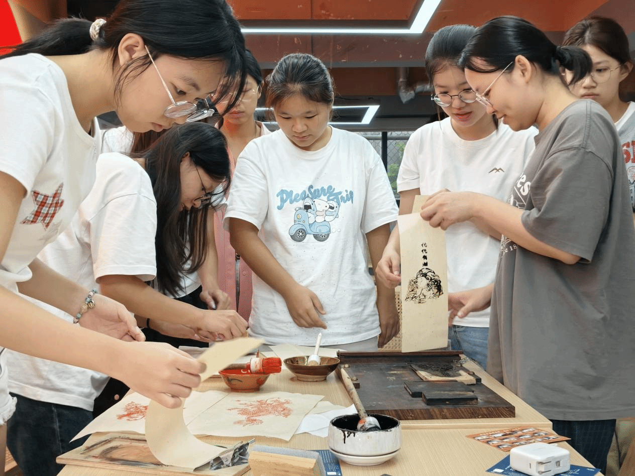 体验过程中,同学们也不时分享自己的感受。有同学表示:“之前只在书本里了解过雕版印刷,今天亲手操作才发现,从调墨到印刷,每一步都需要细心和耐心,这让我真正体会到了非遗技艺背后的匠心。”还有同学说道:“能亲手做出一件桂林雕版彩色套印的作品特别有成就感,以后我也会多了解这门技艺,把它的故事讲给更多人听。”简单质朴的话语,满是对这门非遗技艺的认可与喜爱。