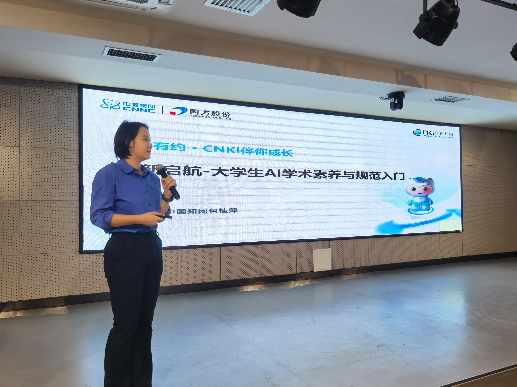 为帮助新生更好地适应大学学习生活,提升学术素养和信息检索能力,10月29日,图书馆联合中国知网开展了主题为“萌新启航--大学生 AI 学术素养与规范入门”的讲座。此次讲座主要面向大一新生,旨在为他们揭开学术研究的神秘面纱,引导其正确利用AI工具和学术资源,为今后的学习和科研之路奠定坚实基础。