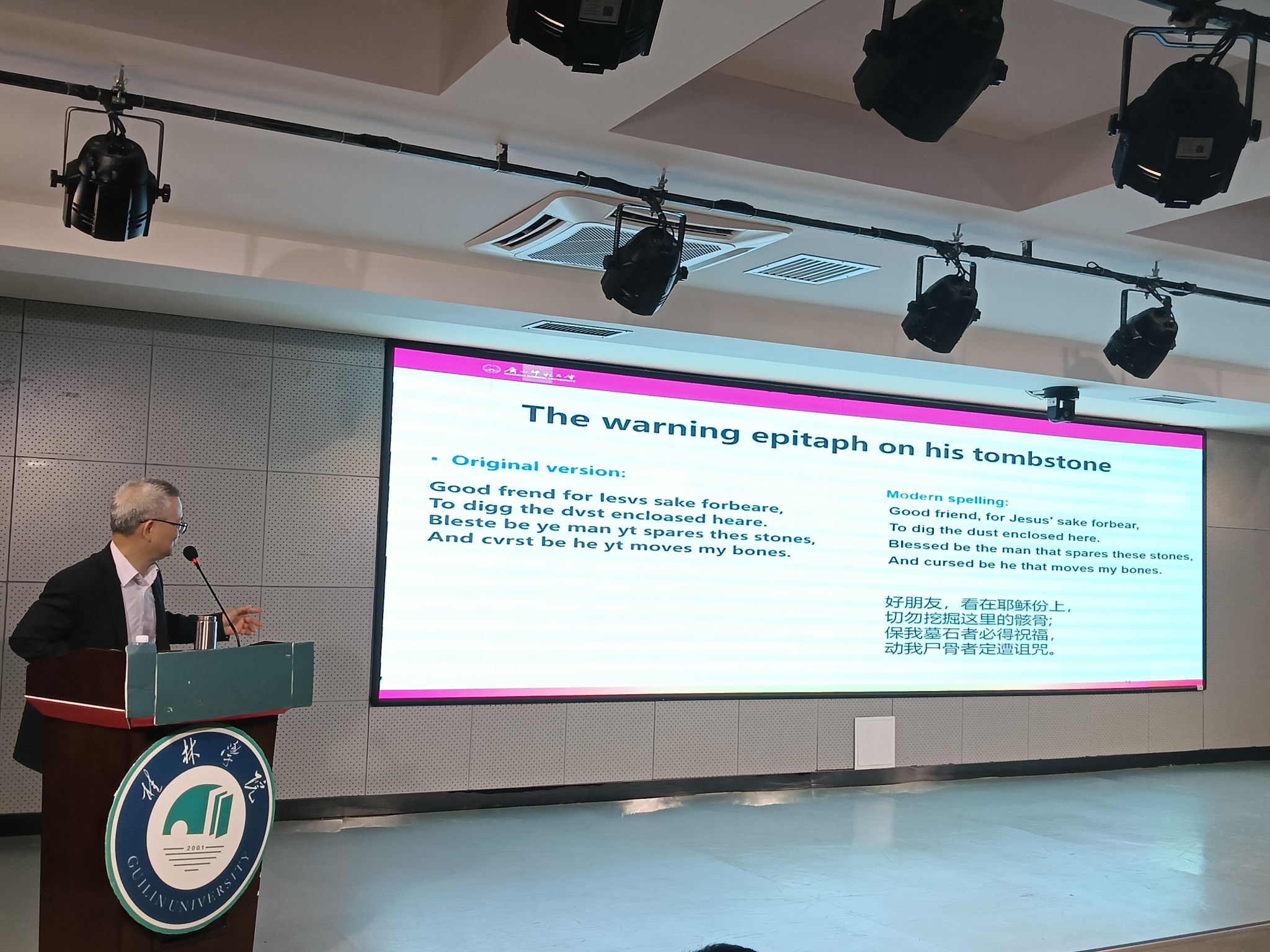 为促进中外文学经典对话、传承人文精神,12月3日,“汤显祖与莎士比亚戏剧比较研究”专题讲座在至善讲堂举行。本次讲座特邀广西师范大学外国语学院谢世坚教授主讲,谢教授博士毕业于北京外国语大学,专注莎士比亚语言与翻译研究,其深厚的学术功底,吸引多学院学生到场聆听。