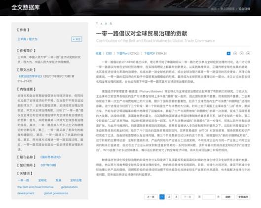 用户可在线对论文进行全文阅读。在阅读的过程中,用户可对文本进行复制粘贴、选择字体大小、打印论文、下载论文(WordPDF格式)。同时,用户还可收藏论文、关注作者。