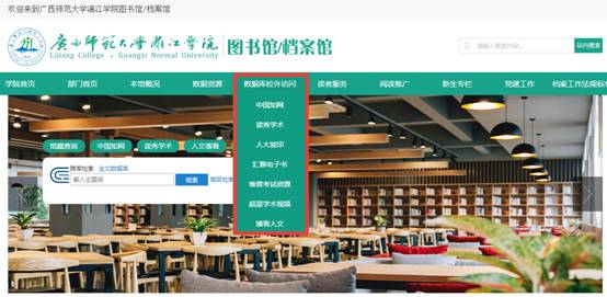 1、登陆广西师范大学漓江学院门户网站点击【图书档案】进入图书馆/档案馆网站。