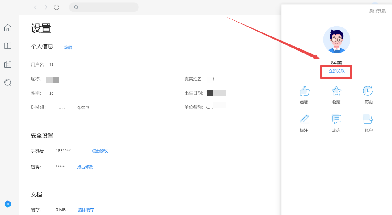 安装好电脑端“全球学术快报·桌面版”软件后,用全球学术快报手机端的同一账号登录。登录后在右上角点击头像,在用户名下方点击“立即关联”,用全球学术快报手机端APP再次扫码进行关联。(PC端每次授权有效期为3天,到期后再次用手机APP授权即可,没有次数限制。)